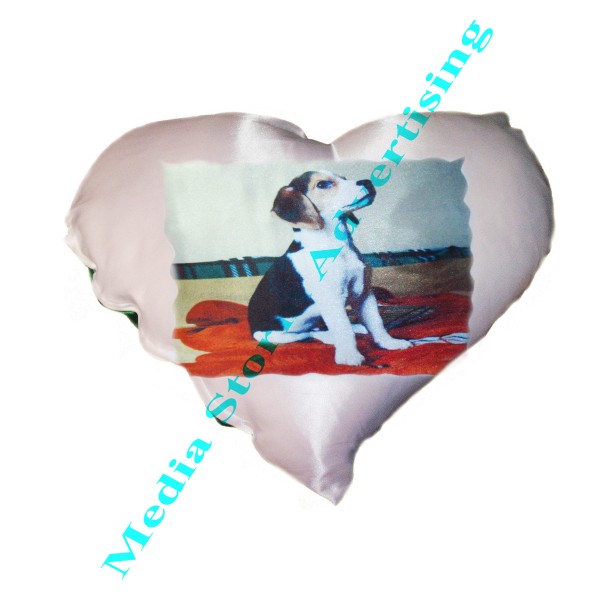 Cadou personalizat perna inima din saten, are o fata alba si una verde. Se imprima cu fotografie, text sau logo pe fata alba. Dimensiuni 45 x 45 cm. Pretul include fata de perna, umplutura si personalizarea. Imprimarea se face prin sublimare in materialul fetei de perna.Cadou pentru toate varstele.