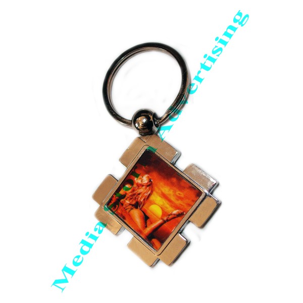 Breloc metalic in forma de romb. Se personalizeaza pe o singura suprafata cu fotografia, text sau logo ales de dumneavoastra. Dimensiuni 3,5cm x 3,5cm. Pretul include personalizarea.