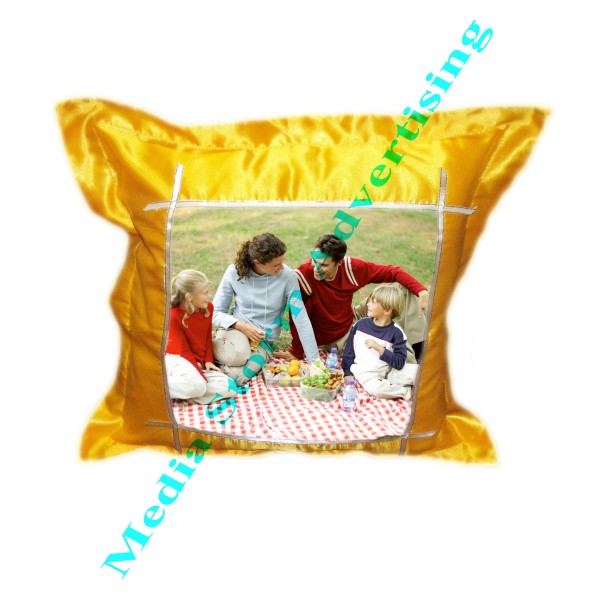 Perna personalizata din saten galben. Se personalizeaza pe fata pernei in zona patratului cu fotografia, textul sau logo-ul dorit de dumneavoastra. Dimensiuni perna 40cm x 40cm. Pretul include personalizarea, fata de perna si umplutura. Un cadou personalizat ideal pentru orice varsta si eveniment.