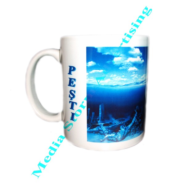 Cana din ceramica alba personalizata cu zodia PESTI. Se poate imprima si cu alta fotografie ce preprezinta semnul zodiacal pesti. Pretul include personalizarea canii.