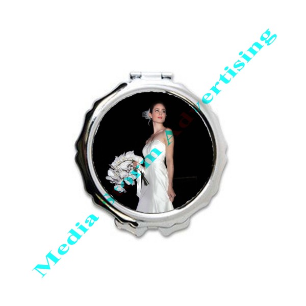 Oglinda rotunda personalizata pentru poseta. Carcasa oglinzii este din material metalic si se deschide in doua parti, avand in interior doua oglinzi foarte clare. Se personalizeaza pe capacul superior al carcasei cu fotografia, textul si/sau logo-ul dorit de dumneavoastra. Pe spatele carcasei este gravat un model cu trandafiri. Diametrul oglinzii este de 6,5 cm. Cadou personalizat dedicat femeilor. Pretul afisat include personalizarea.