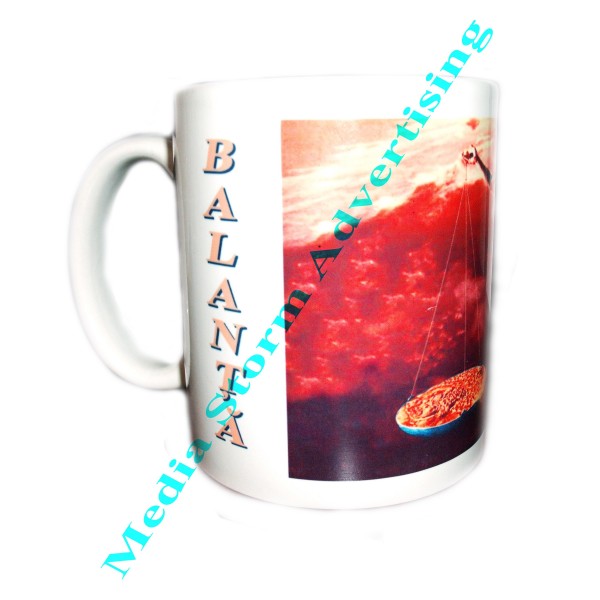 Cana ceramica alba imprimata cu fotografie reprezentand zodia balanta. Se poate personaliza la cerere si cu alta fotografie sau semn zodiacal pentru balanta. Pretul include imprimarea.