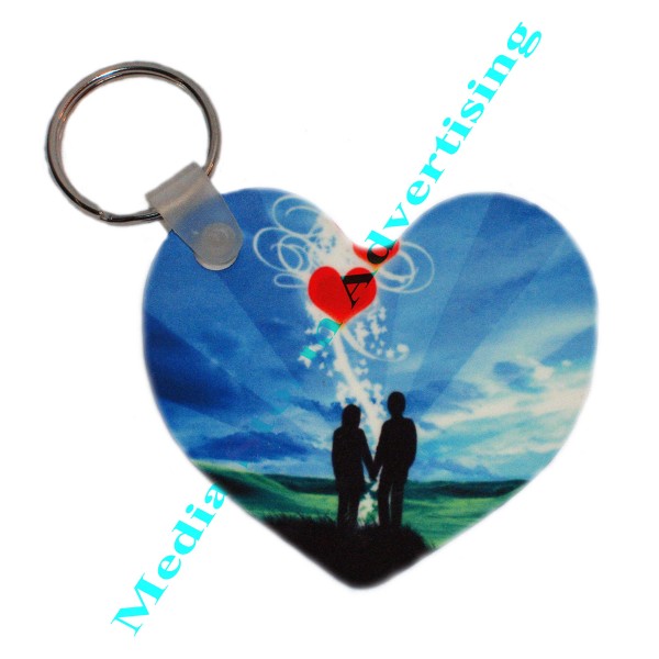 Breloc personalizat in forma de inima din material plastic. Se imprima pe ambele fete cu imagine,text sau logo la alegerea dumneavoastra. Dimensiuni 6cm x 6cm. Pretul include personalizarea.