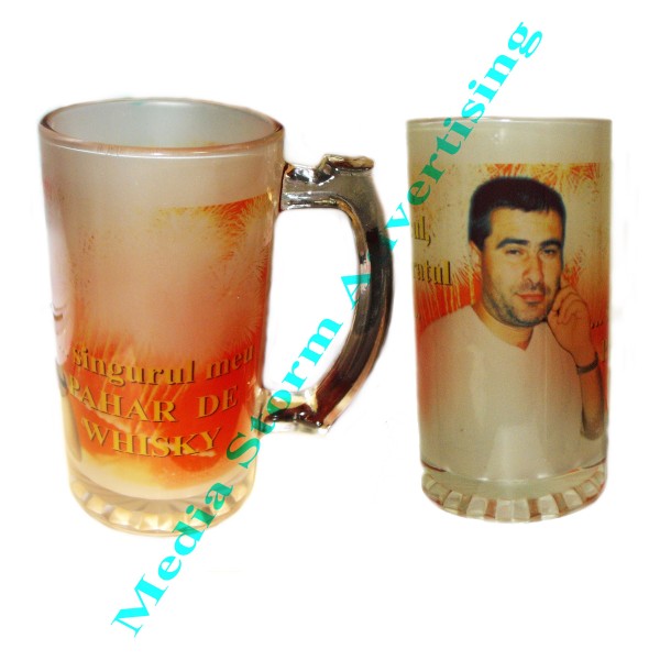 Halba personalizata din sticla mata. Se poate imprima fotografia, textul, logo-ul dorit de dumneavoastra. Cadou personalizat ideal pentru barbati. Dimensiuni: 15,3 inaltime si 7,8 diametru. Capacitate 400 ml.