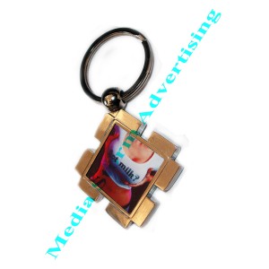 Breloc metalic in forma de romb. Se personalizeaza pe o singura suprafata cu fotografia, text sau logo ales de dumneavoastra. Dimensiuni 3,5cm x 3,5cm. Pretul include personalizarea.