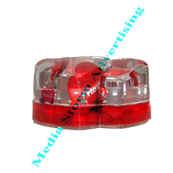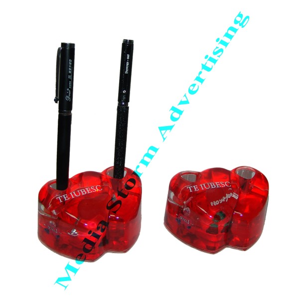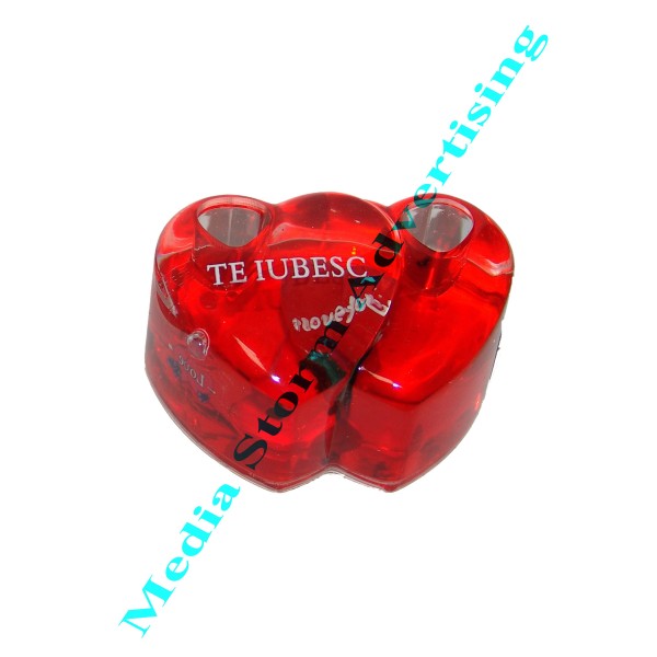 Suport pentru doua instrumente de scris din material plastic in forma de doua inimi, dimensiuni 9x6x4,5 cm, inscriptionat cu TE IUBESC. Este plin cu lichid unde plutesc diverse mesaje gen Love.... Cadou deosebit pentru iubit sau iubita. Pretul cuprinde doar suportul fara alt instrument de scris.