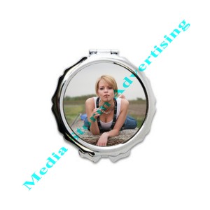 Oglinda rotunda personalizata pentru poseta. Carcasa oglinzii este din material metalic si se deschide in doua parti, avand in interior doua oglinzi foarte clare. Se personalizeaza pe capacul superior al carcasei cu fotografia, textul si/sau logo-ul dorit de dumneavoastra. Pe spatele carcasei este gravat un model cu trandafiri. Diametrul oglinzii este de 6,5 cm. Cadou personalizat dedicat femeilor. Pretul afisat include personalizarea.