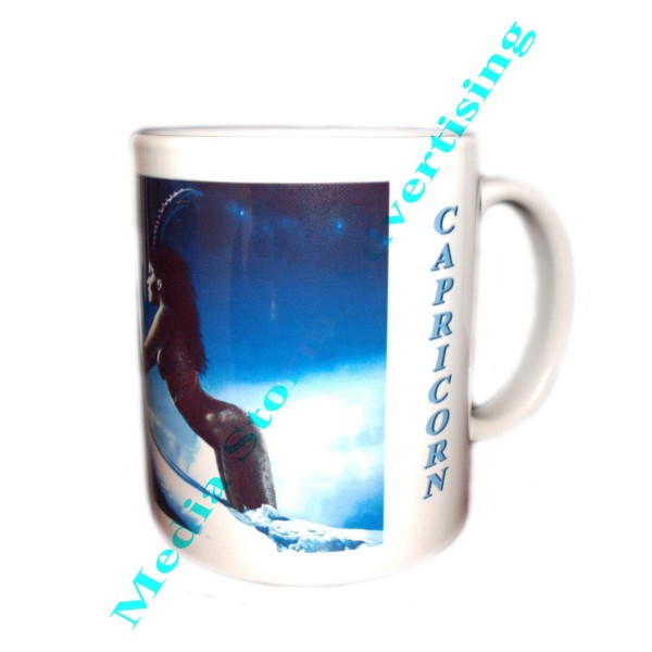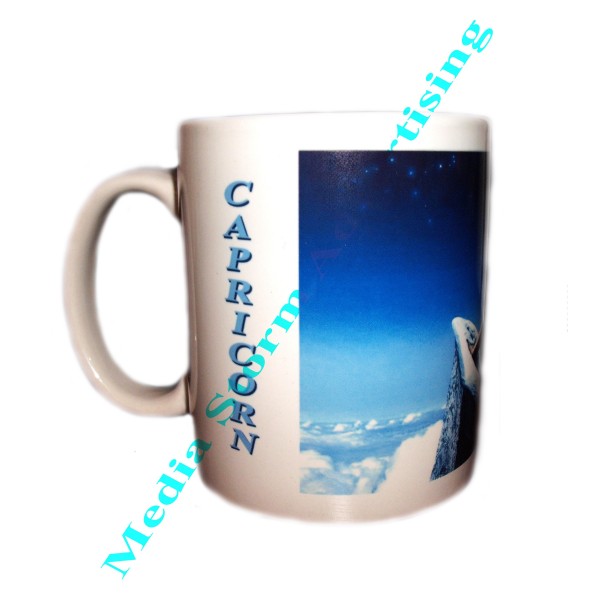Cana ceramica alba personalizata prin sublimare cu semnul zodiacal capricorn. Se poate imprima la alegerea dumneavoastra si alta fotografie ce reprezinta zodia capricorn. Pretul include personalizarea.