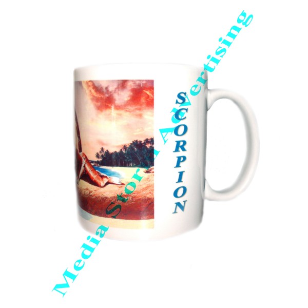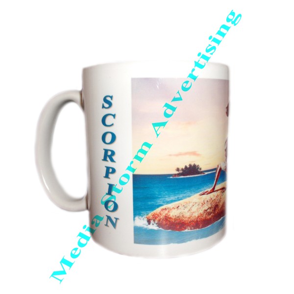 Cana ceramica alba personalizata cu semnul zodiacal scorpion. Se poate imprima si cu alt semn ce reprezinta zodia scorpion. Pretul include personalizarea.