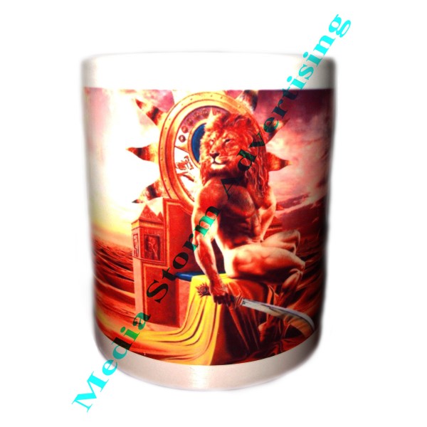 Cana ceramica alba personalizata cu fotografie ce reprezinta zodia leu. Se poate imprima la cerere un alt semn pentru zodia leu. Pretul include personalizarea.