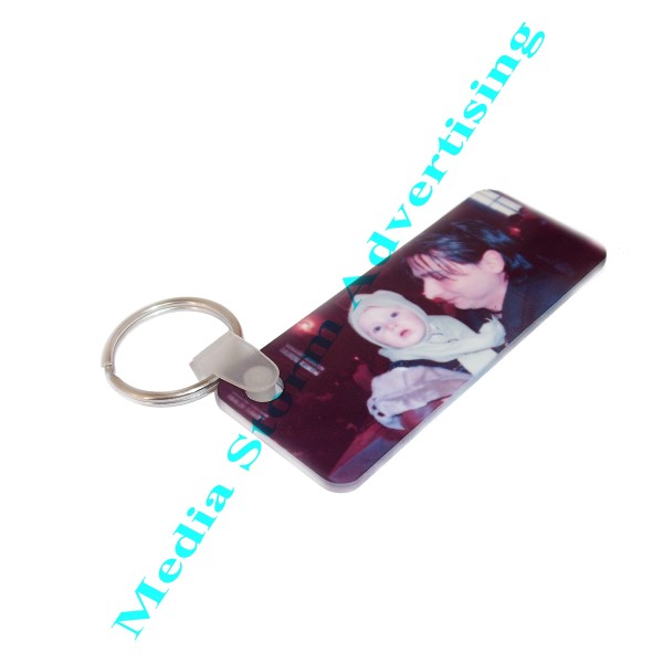 Breloc personalizat dreptunghi dim material plastic rezistent. Se imprima pe ambele fete fotografiile, textele sau logo-urile dorite de dumneavoastra. Pot fi folosite si ca brelocuri de usi pentru hoteluri, pensiuni sau alte unitati de turism. In acelasi timp datorita personalizarii pe doua fete pot deveni usor obiecte promotionale ieftine si deosebite. Pretul include personalizarea.